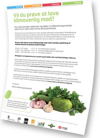 Der er tre målgrupper for projektet: kantinepersonale, hjemkundskabslærere og borgere i Odense. I projektet bliver der bl.a. holdt tre arrangementer ved Kold College, hvor deltagerne bl.a. selv vil kunne prøver at lave Klimavenlig mad under kyndig vejledning af kokken Rasmus Fredslund fra Kold College. De tre arrangementer holdes: